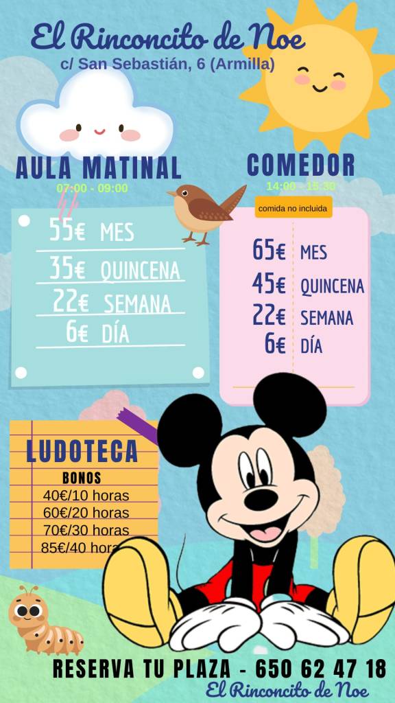 Servicio especial de recogida en el colegio (C.E.I.P. San Miguel) con posibilidad de comer en el Rinconcito de Noe.